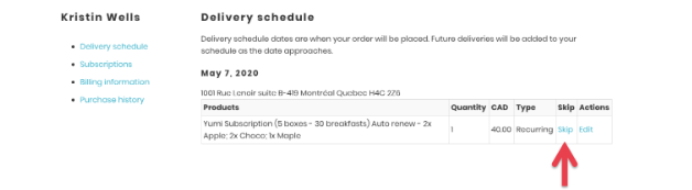 The word “Skip” will now be replaced by “Unskip”. That means you’ve successfully skipped your subscription and will not be charged. If you change your mind, you can click “Unskip” anytime prior to your scheduled billing date.